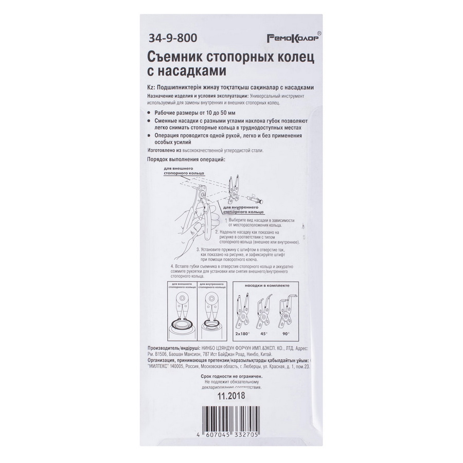 Применение: служит для снятия внутренних и наружных стопорных колец, установленных на штоках, тормозах и на деталях трансмиссии.