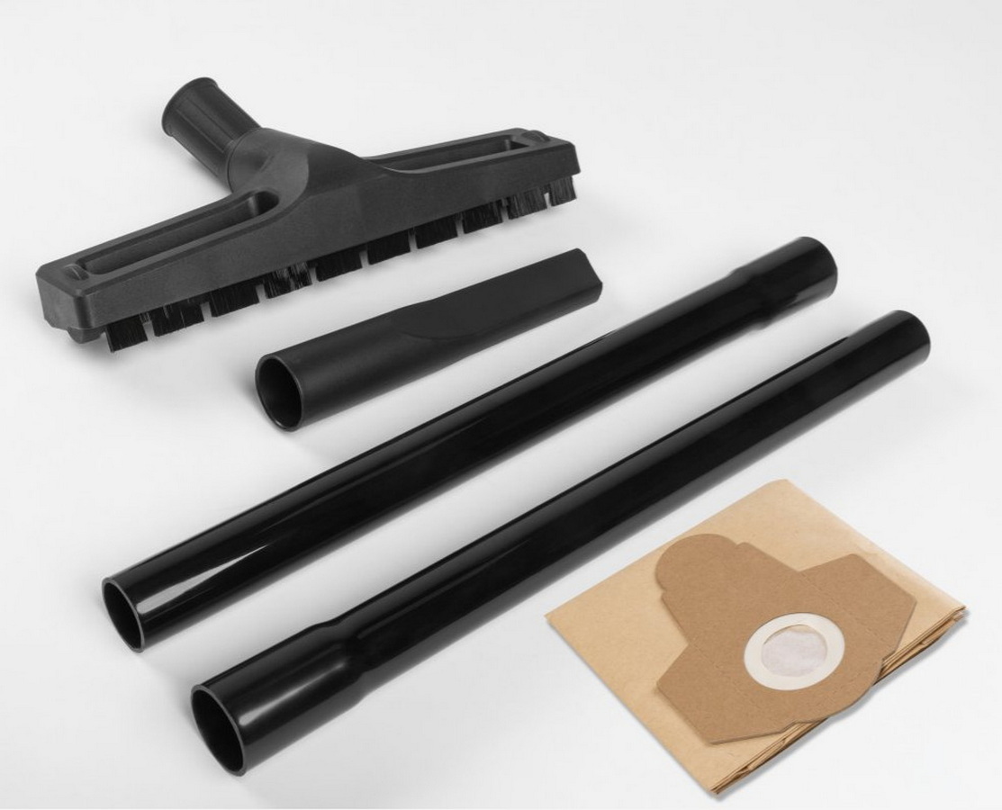Состав комплекта: Пылесос; гибкий всасывающий шланг; антистатическая трубка – 2 м; узкая насадка; широкая насадка; бумажные мешки – 2 шт.; поролоновый фильтр – 1 шт.