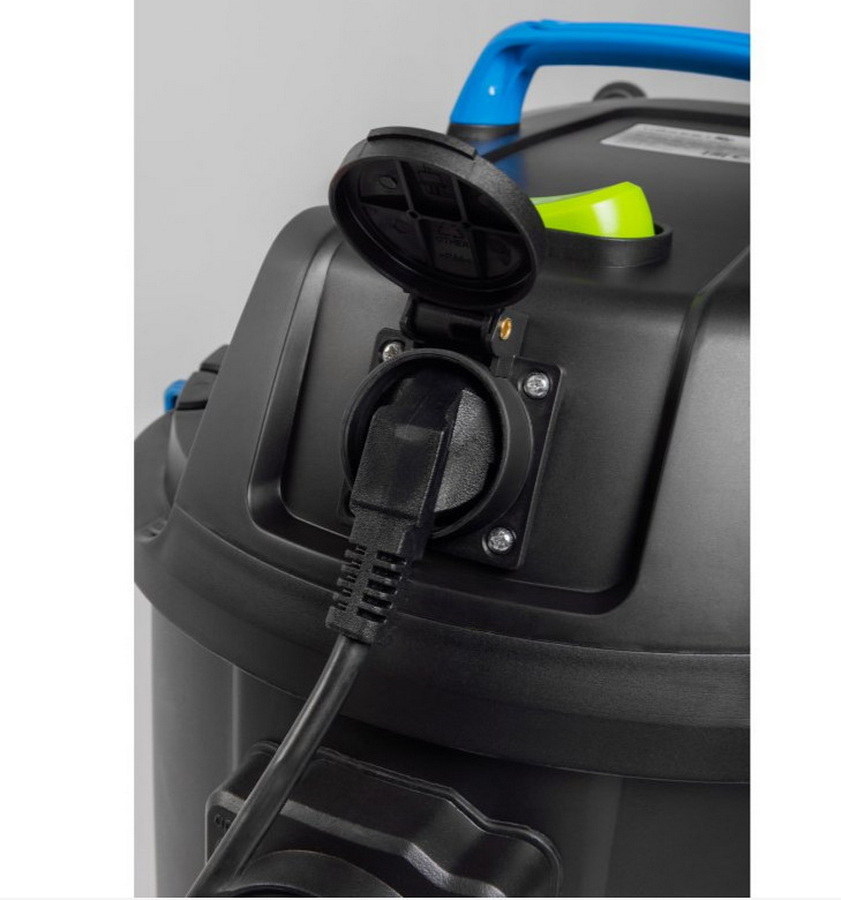 Имеет встроенную розетку для питания проводных электроинструментов.