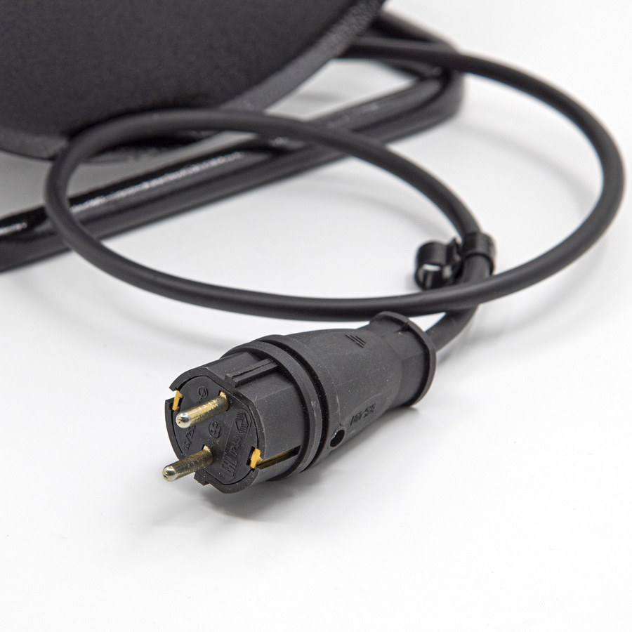 Провод с одной стороны армированный штепсельной каучуковой розеткой с крышкой, с другой – разборной каучуковой вилкой (IP44)