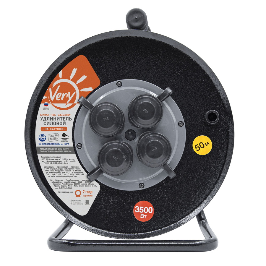 Морозостойкий, удлинители серии КГ можно использовать на открытом воздухе в абсолютно любую погоду – они рассчитаны на широкий диапазон рабочих температур от -50 до +40°С, устойчив к дождю, солнцу