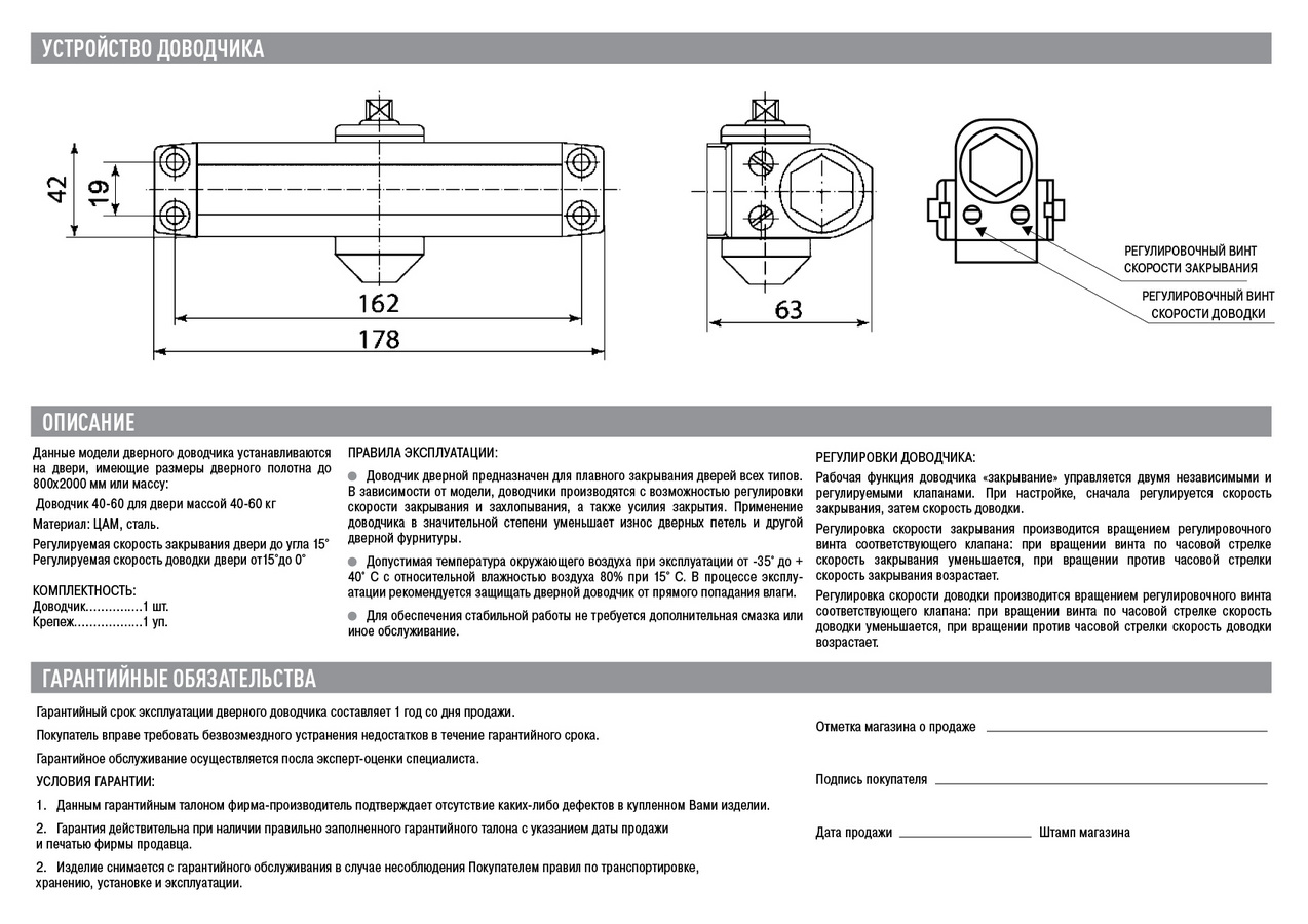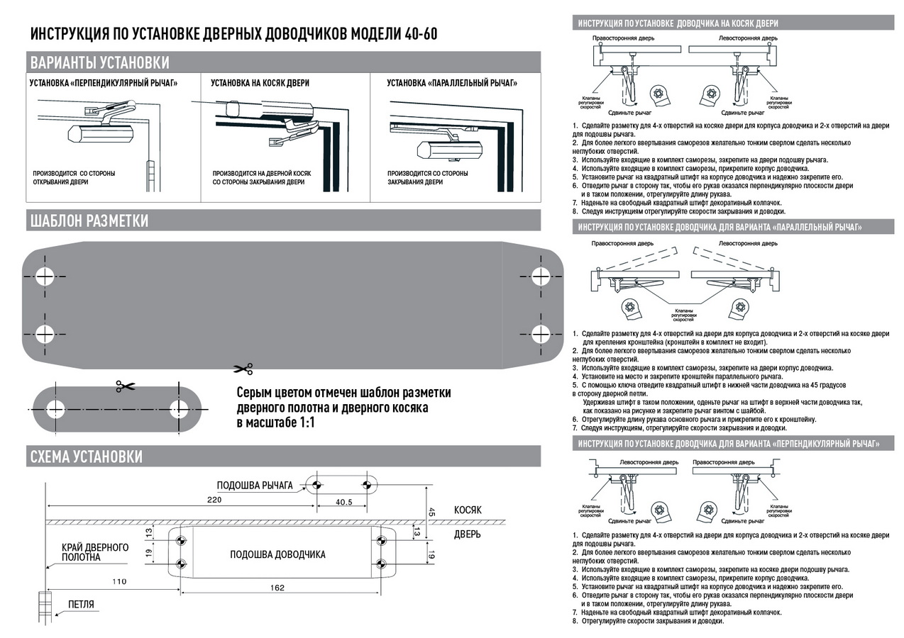 Назначение: применяется для автоматического закрывания межкомнатных и входных дверей