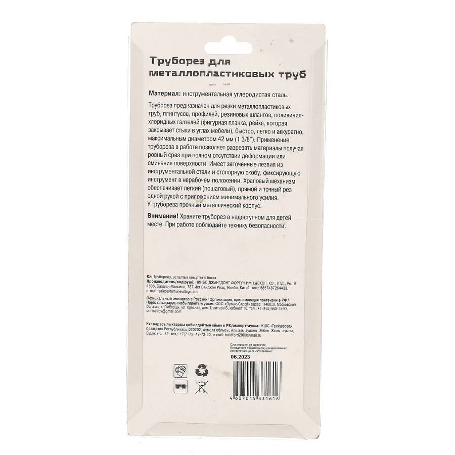 Применение: для резки пластиковых труб диаметром до 42 мм.