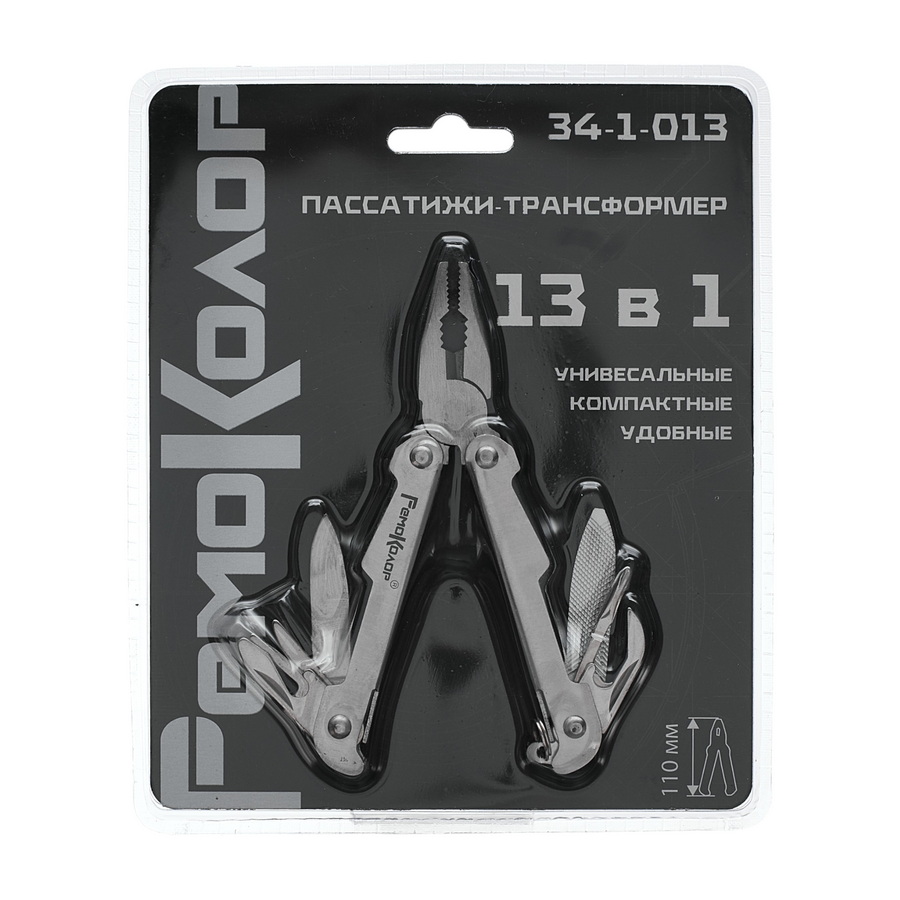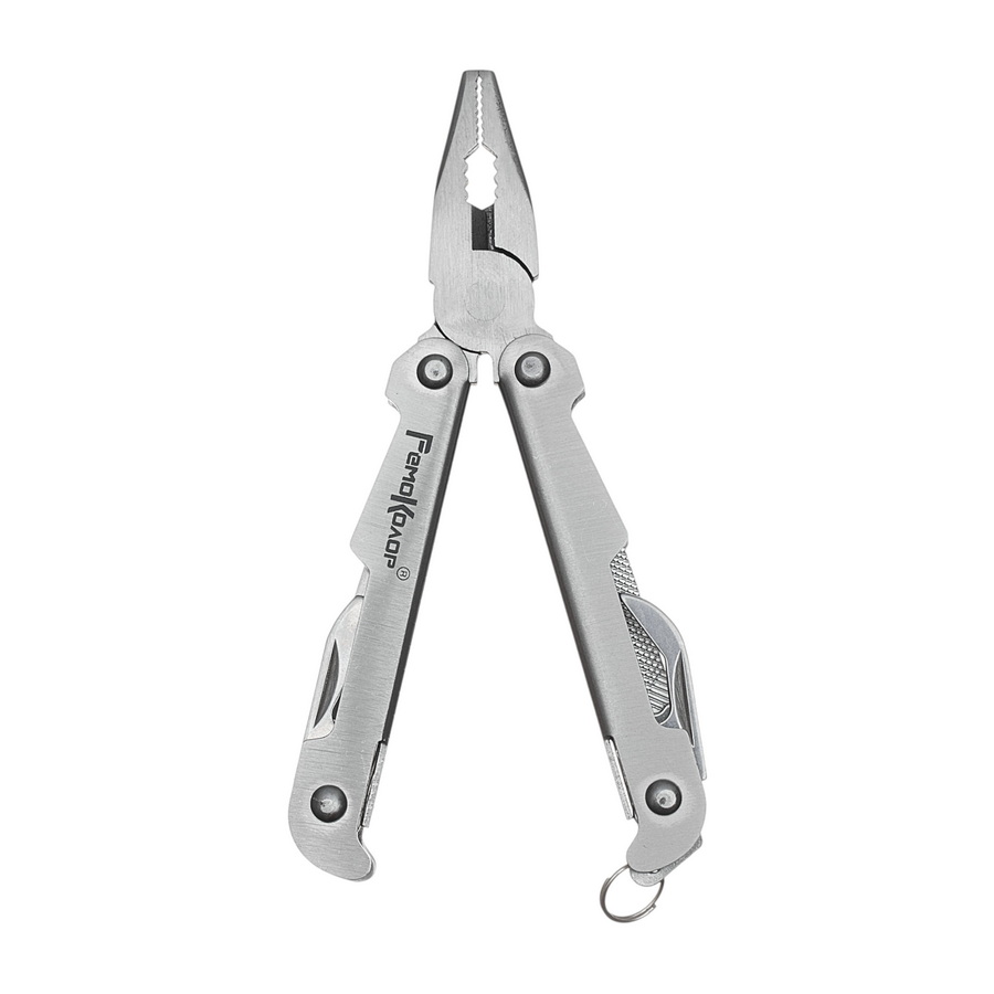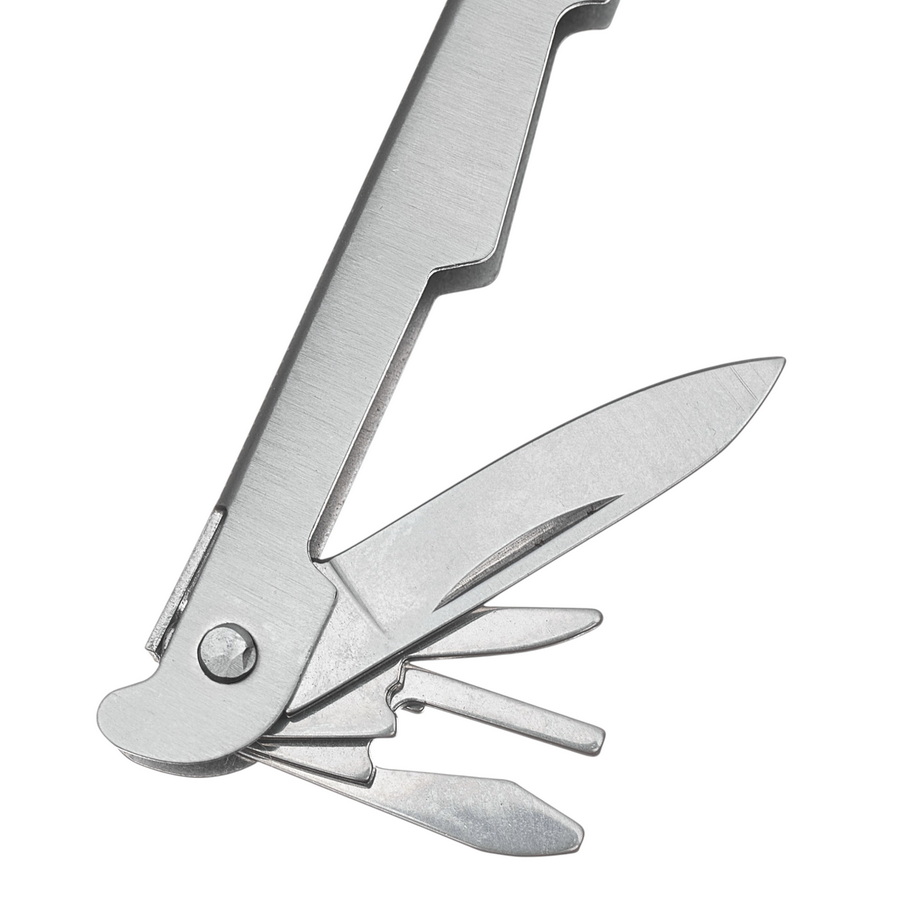 В комплект входят: приспособление для зачистки проводов, консервный нож, захват для цилиндрических деталей, открывалка для бутылок, кусачки для проволоки, отвертки SL 3 шт., отвертка PH2, плоскогубцы, ножи 2 шт., напильник.