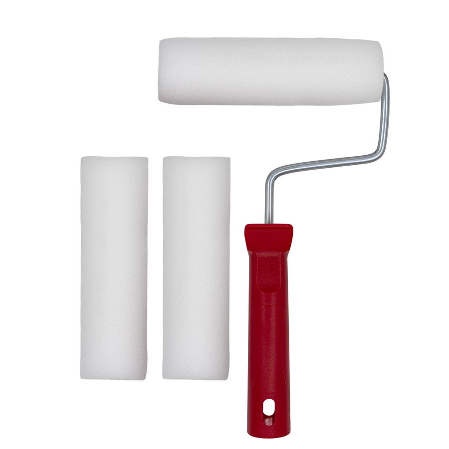 Преимущества: покраска узких рам и труднодоступных мест — валик оптимален для работы на небольших поверхностях за счет диаметра трубы 15мм и длины ролика 140мм; быстросъемная конструкция — валик снимается и надевается за считанные секунды, это значительно упрощает очистку инструмента и позволяет менять валик на новый; оцинкованный бюгель — надежная защита от коррозии обеспечивает долгий срок службы валиков; свободное вращение ролика на бюгеле — валик не заедает, это облегчает рабочий процесс и делает отдачу материала на поверхность максимальной. Две дополнительные шубки в комплекте хватит для выполнения большого объема работ.