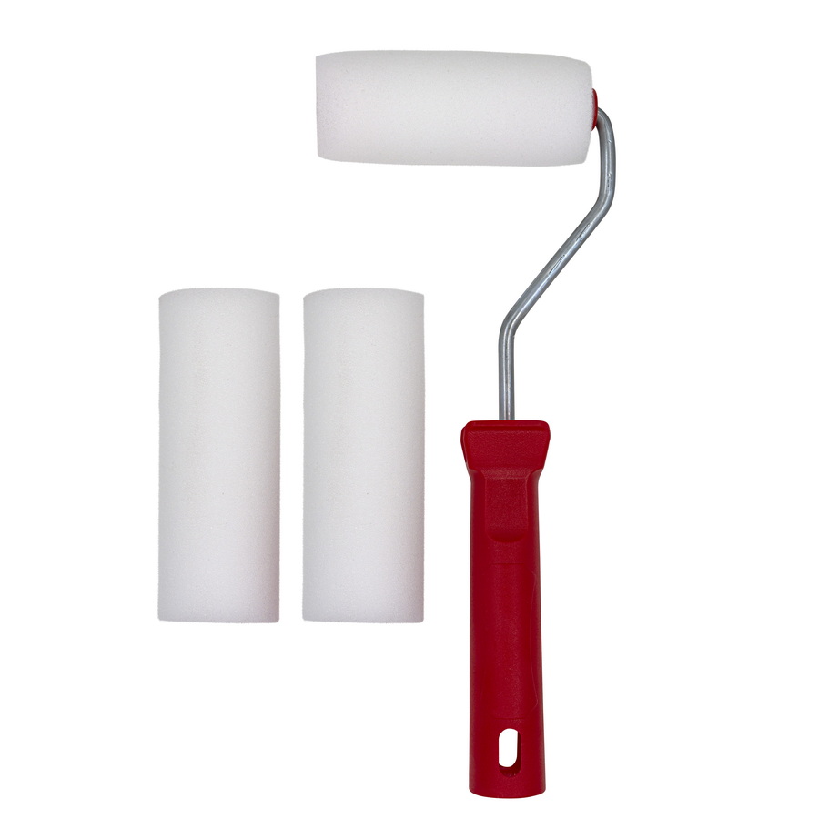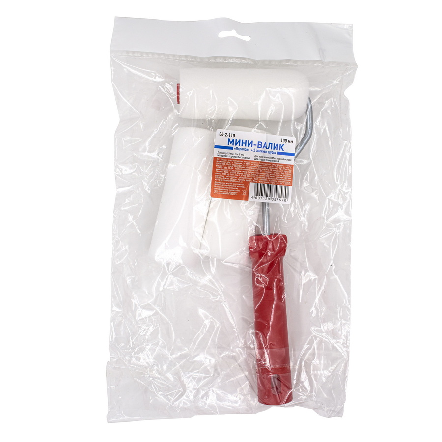 Преимущества: покраска узких рам и труднодоступных мест — валик оптимален для работы на небольших поверхностях за счет диаметра трубы 15мм и длины ролика 100мм; быстросъемная конструкция — валик снимается и надевается за считанные секунды, это значительно упрощает очистку инструмента и позволяет менять валик на новый; оцинкованный бюгель — надежная защита от коррозии обеспечивает долгий срок службы валиков; свободное вращение ролика на бюгеле — валик не заедает, это облегчает рабочий процесс и делает отдачу материала на поверхность максимальной. Две дополнительные шубки в комплекте хватит для выполнения большого объема работ.