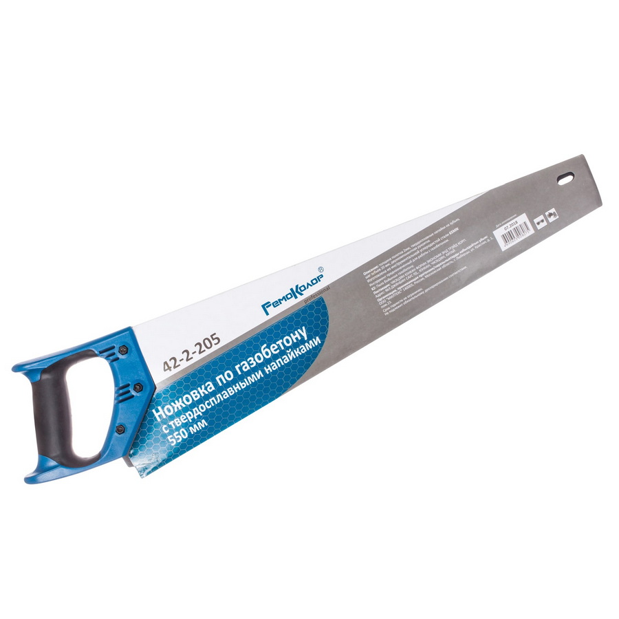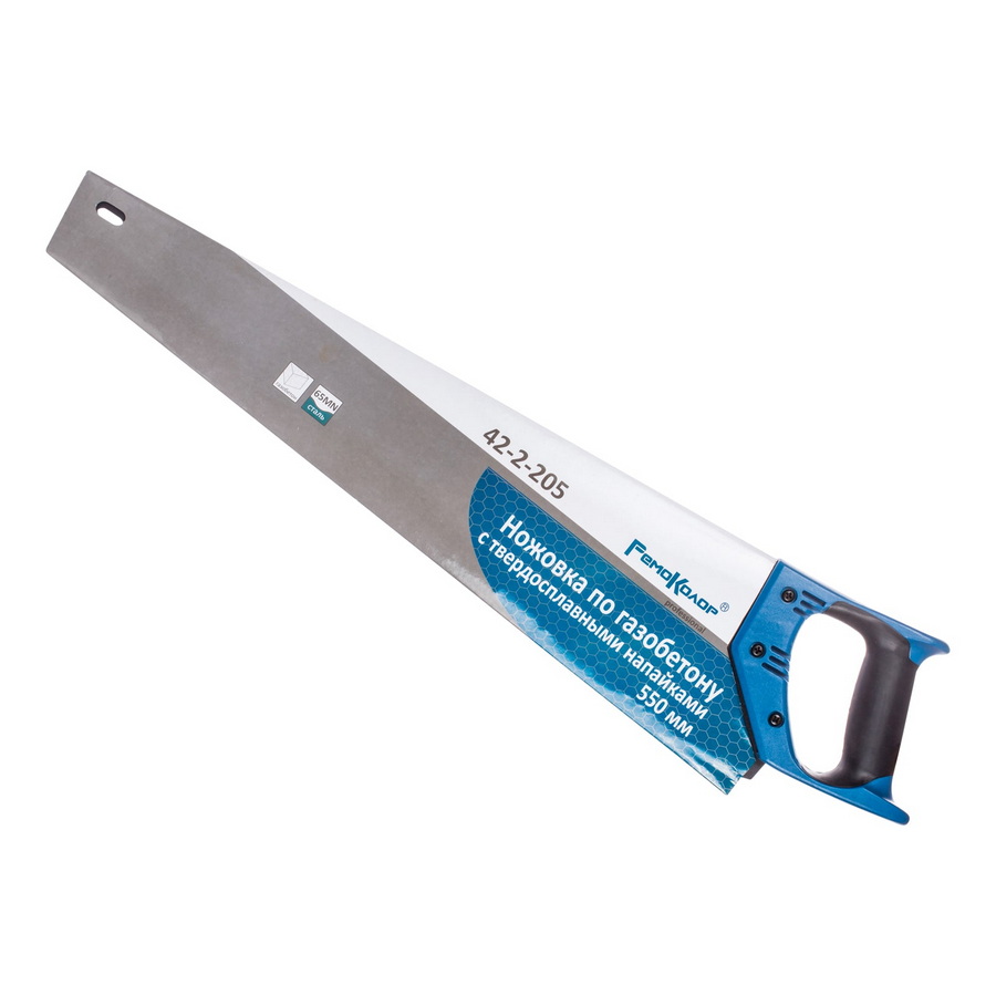 Материал: полотно – углеродистая сталь 65MN, напайки – карбид вольфрама, двухкомпонентная рукоятка из ABS-пластика со вставками из термопластичной резины.