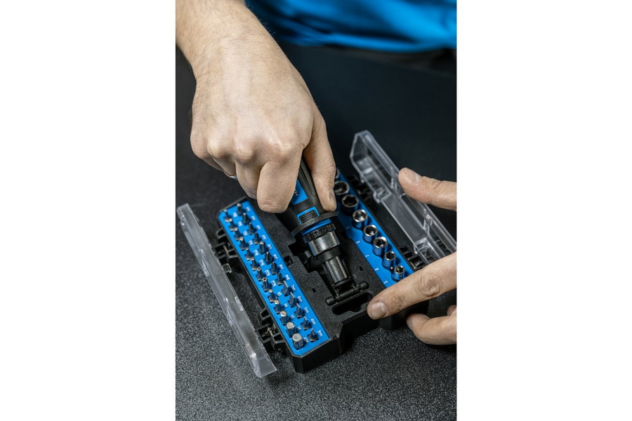 упакован в практичный органайзер, позволяющий хранить все элементы.