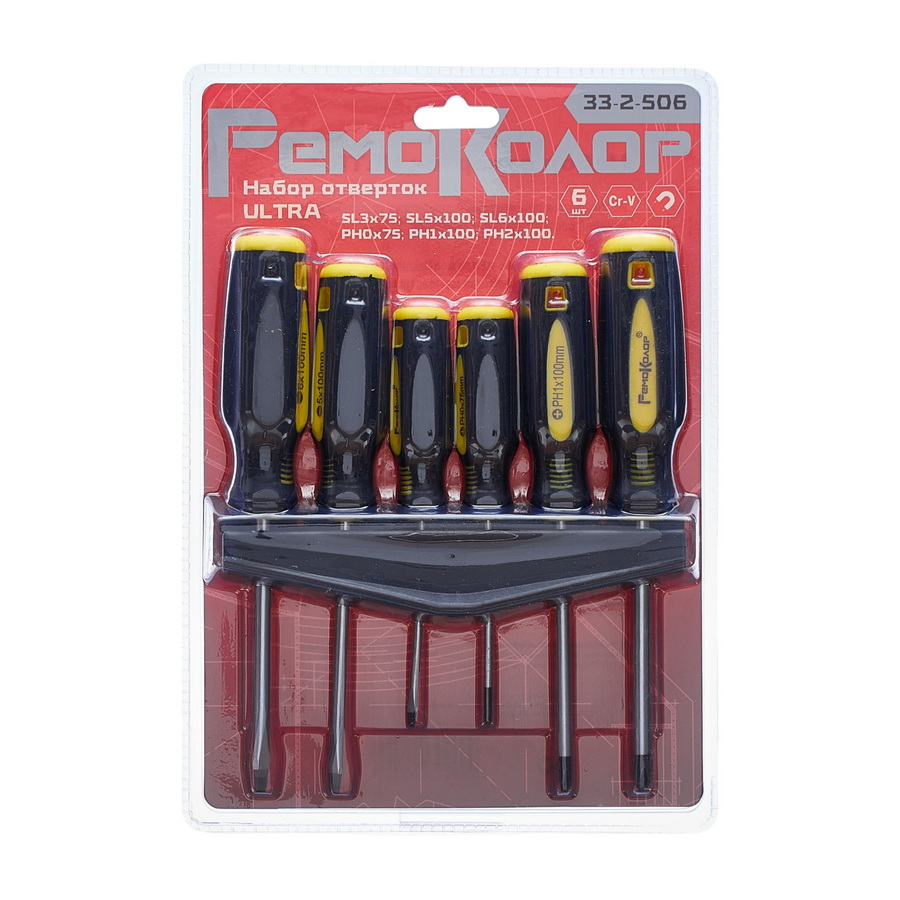 SL 3 x 75 мм, SL 5 x 100 мм, SL 6 x 100 мм, PH 0 x 75 мм, PH 1 x 100 мм, PH 2 x 100 мм