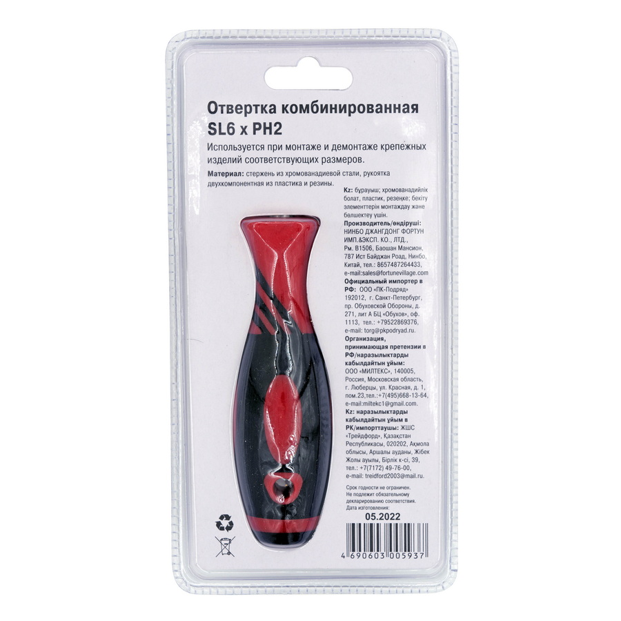 Материал: Стержень - хромванадиевая сталь с рабочими частями SL6хPH2, двухкомпонентная рукоятка - пластик со вставками из термопластичной резины.