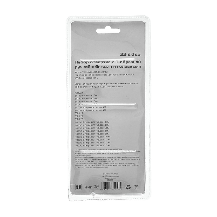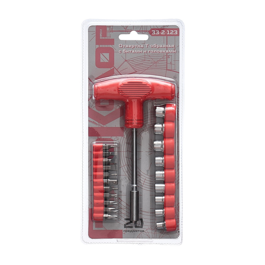 Материал: вороток, биты, адаптер, торцевые головки - хромванадиевая сталь, двухкомпонентная рукоятка – пластик со вставками из термопластичной резины.