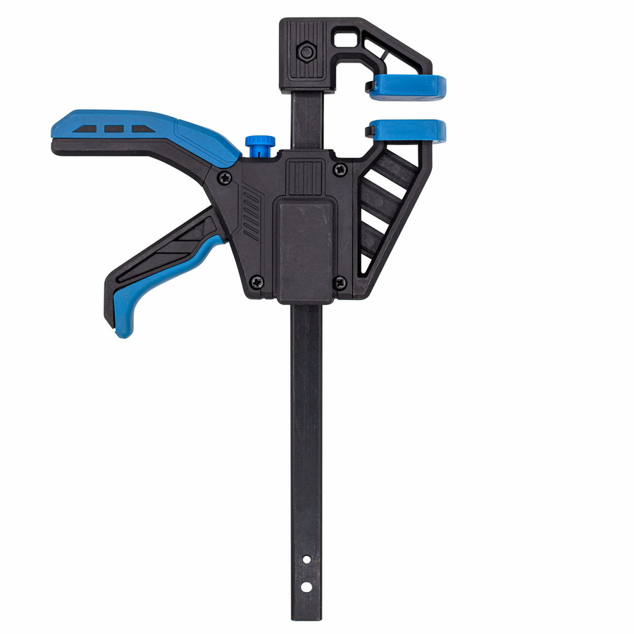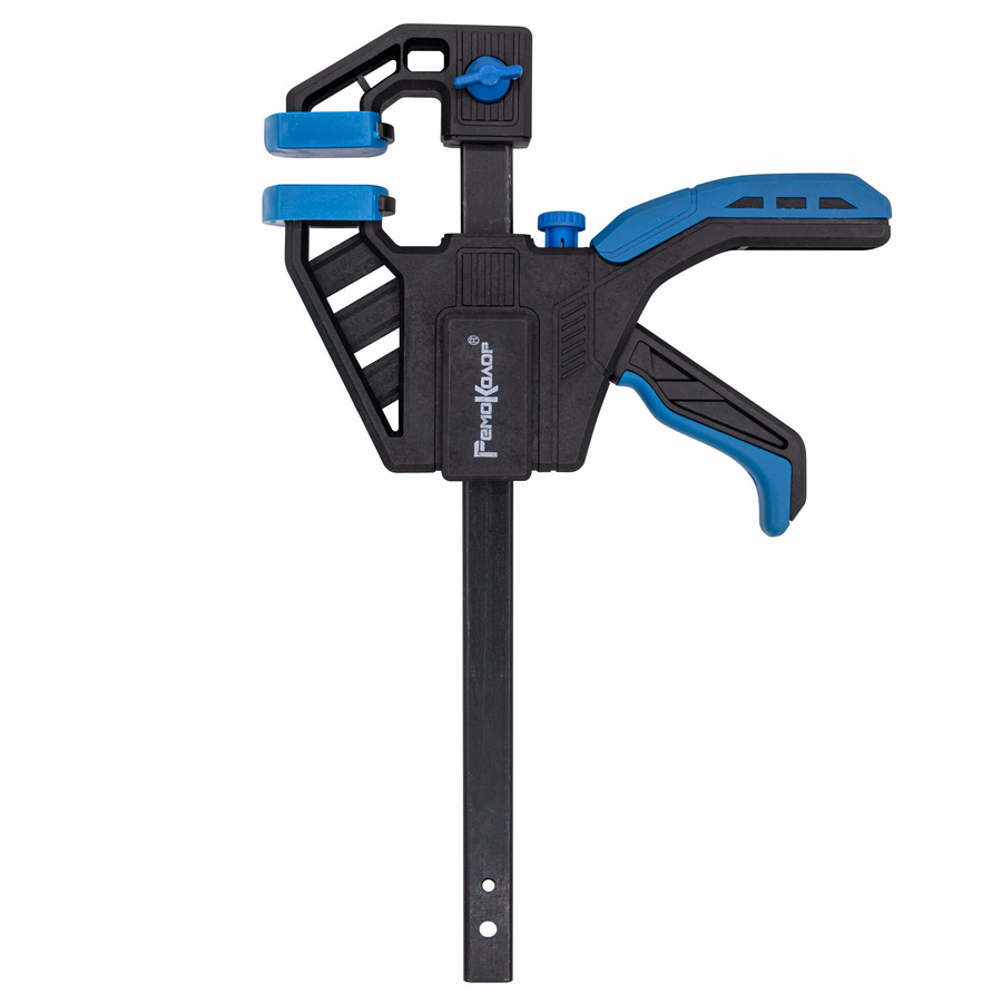 Используется при строительных и ремонтных работах. Оснащена быстрозажимным механизмом. Рукоятка имеет пистолетную форму, что очень удобно, и выполнена из высококачественной пластмассы. Глубина захвата 63мм. Ширина внутреннего хвата 150мм, внешнего 310мм.