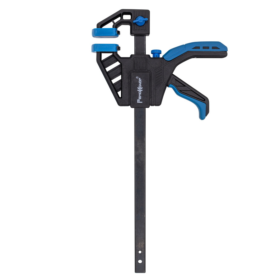 Используется при строительных и ремонтных работах. Оснащена быстрозажимным механизмом. Рукоятка имеет пистолетную форму, что очень удобно, и выполнена из высококачественной пластмассы. Глубина захвата 63мм. Ширина внутреннего хвата 250мм, внешнего 410мм.