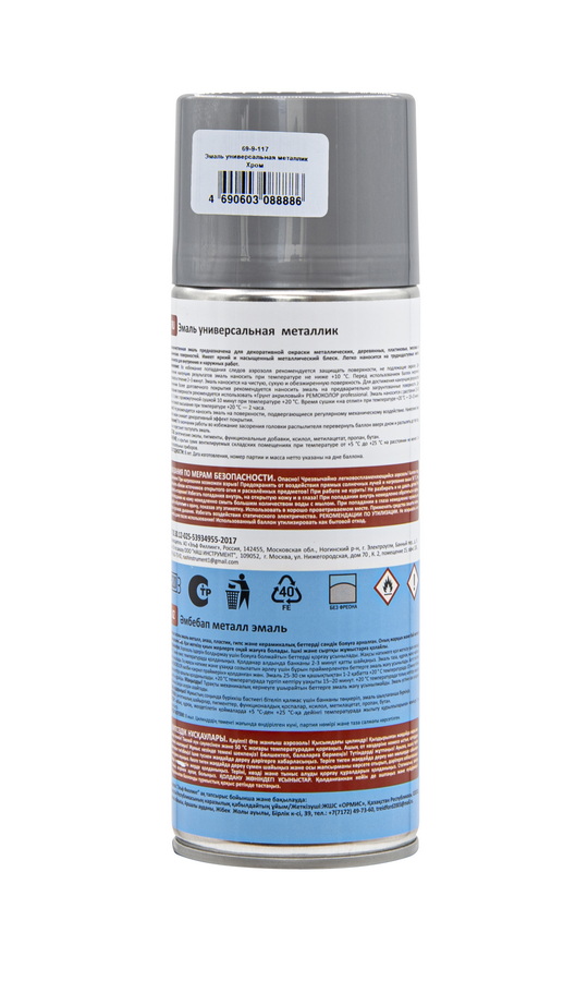 Имеет яркий и насыщенный металлический блеск. Аэрозольная краска в баллончике легко наносится на труднодоступные поверхности. Эмаль дает отличный визуальный эффект, но не имеет очень высокой стойкости к истиранию (подробнее в применении). Применяется для внутренних работ.