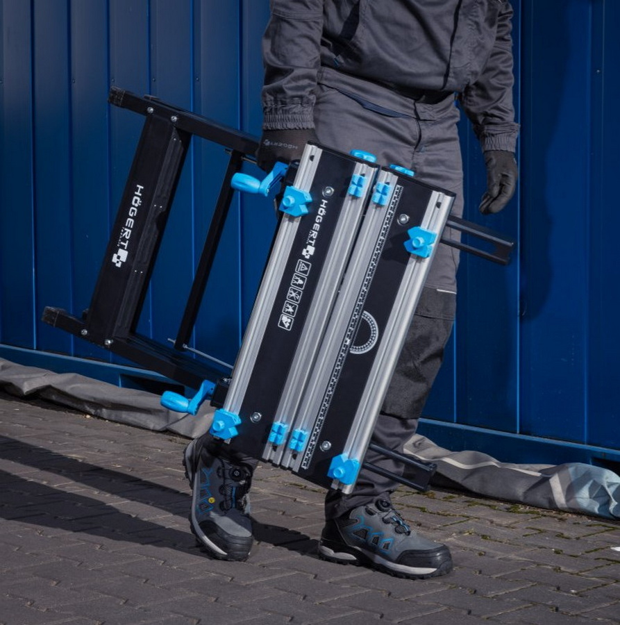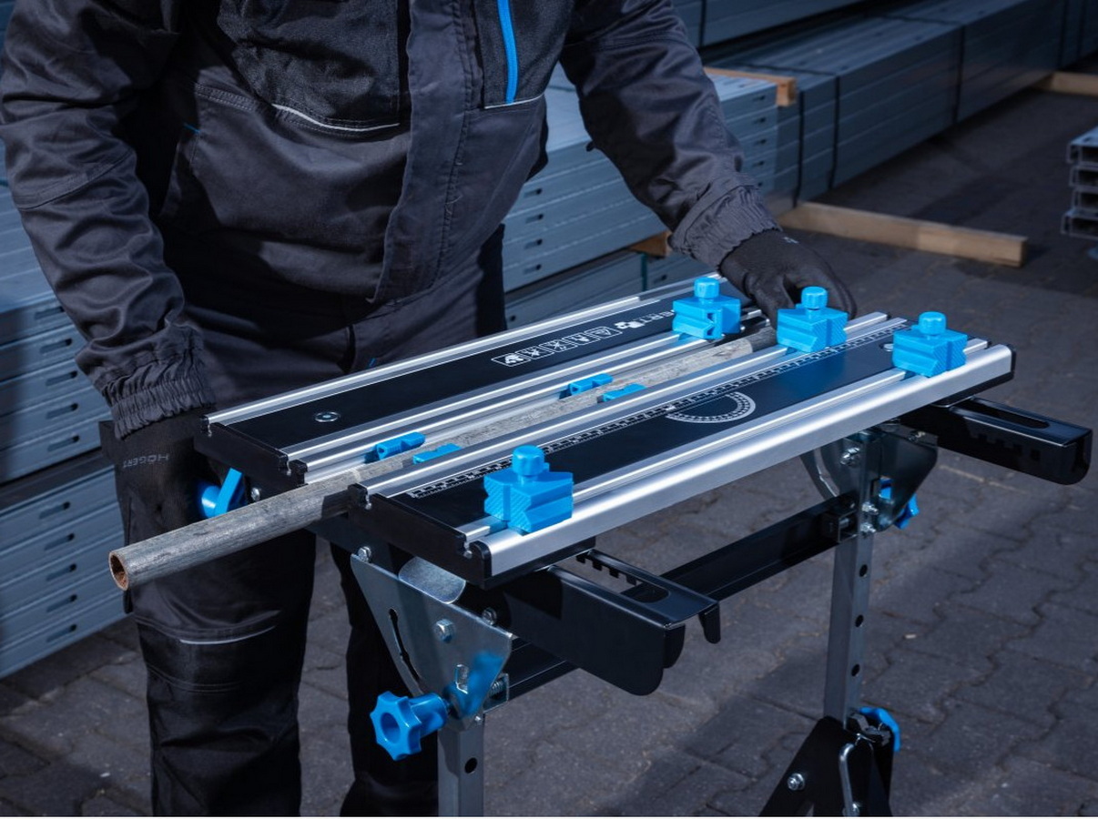 Прочная сталь и устойчивый и легкий алюминий, из которых изготовлены столешница и конструкция, гарантируют устойчивость и долговечность инструмента.