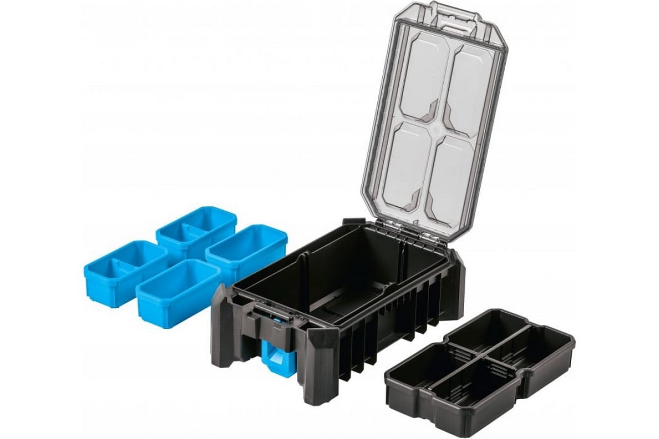 4 съемные чаши одинакового размера, 1 чаша большего размера с 3 функциональными отделениями;Защита от воды и пыли;Корпус изготовлен из полимеров, обеспечивает повышенную прочность на механические повреждения;Совместимость с другими элементами системы модульных ящиков.