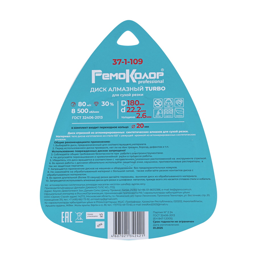 Применение: Алмазные диски для широкого спектра действия. Применяются для сухого реза кирпича, бетона, натурального и искусственного камня. Способны разрезать тонкую арматуру в бетоне. Высокая скорость резания и продолжительность работы.