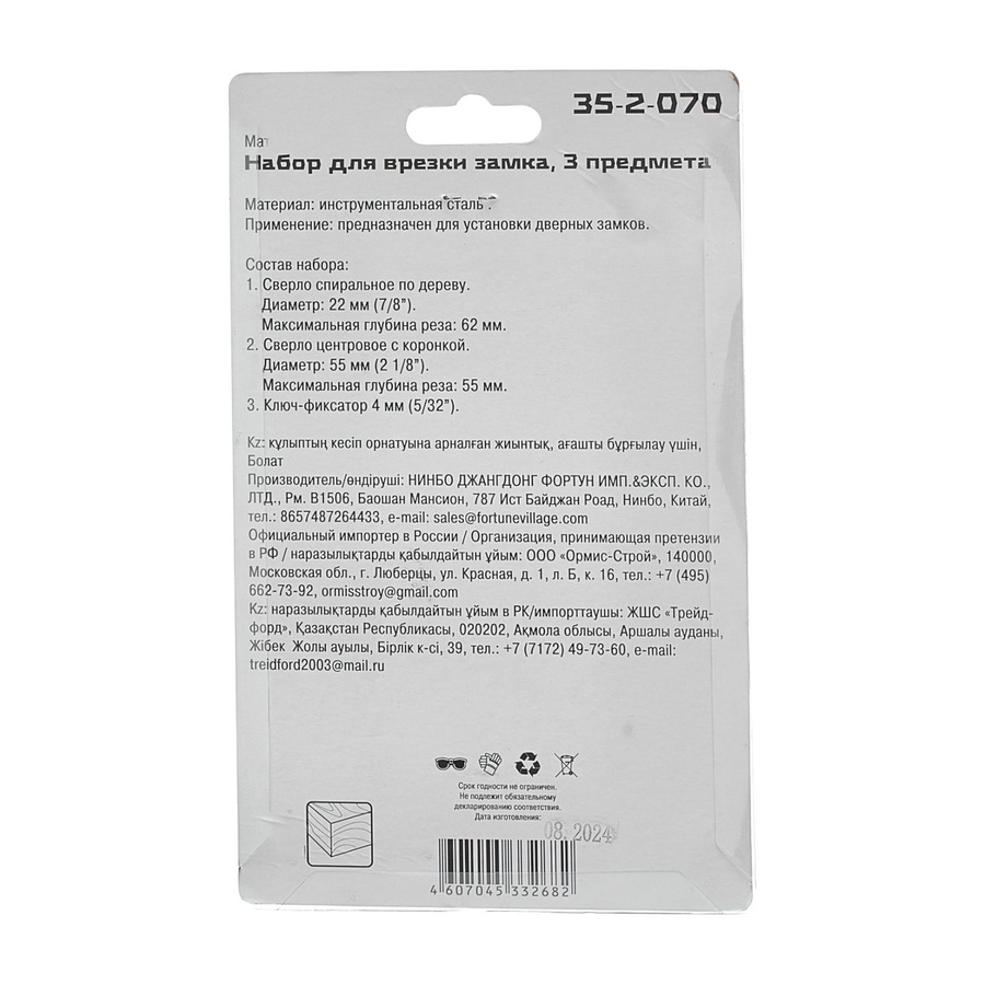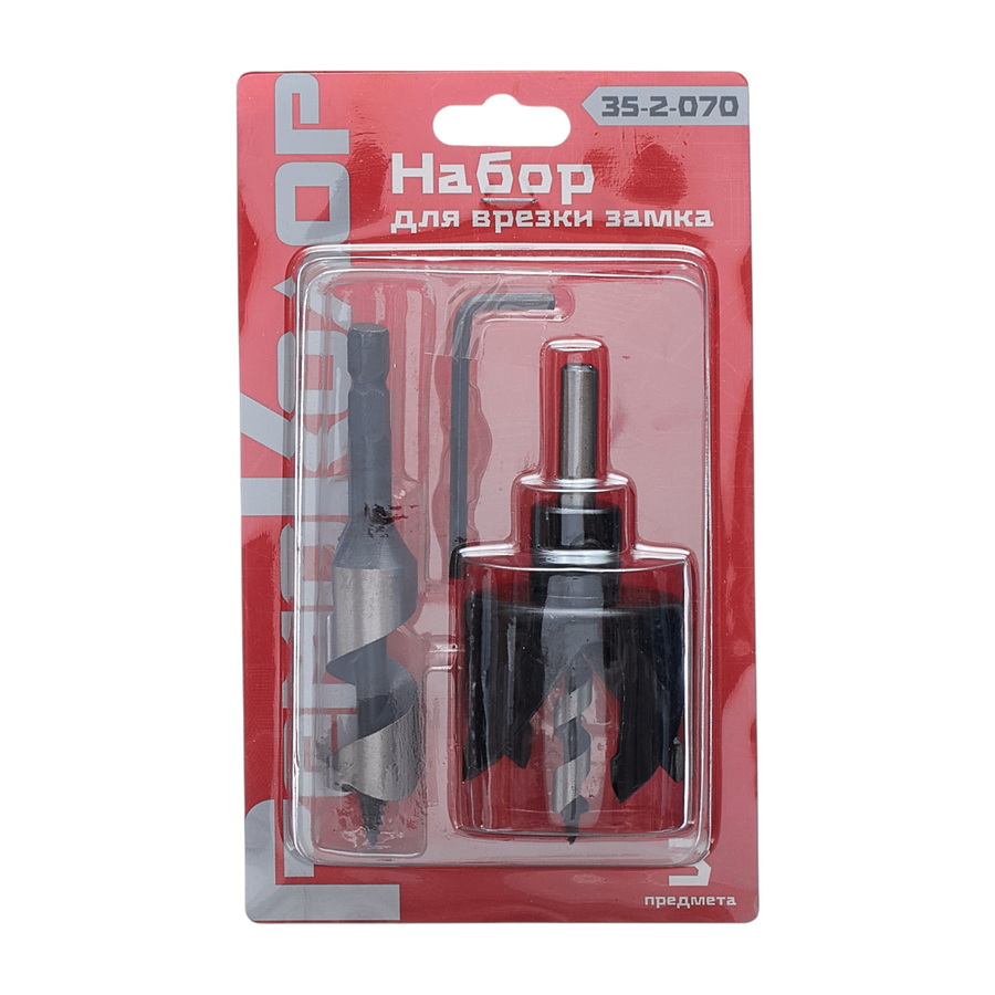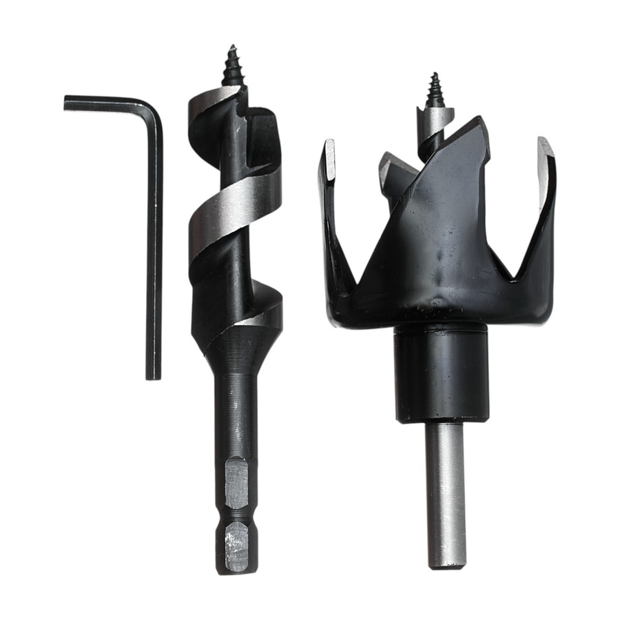 винтовое сверло 22 мм, центрирующее сверло с коронкой 55 мм, инбусовый ключ 4 мм.