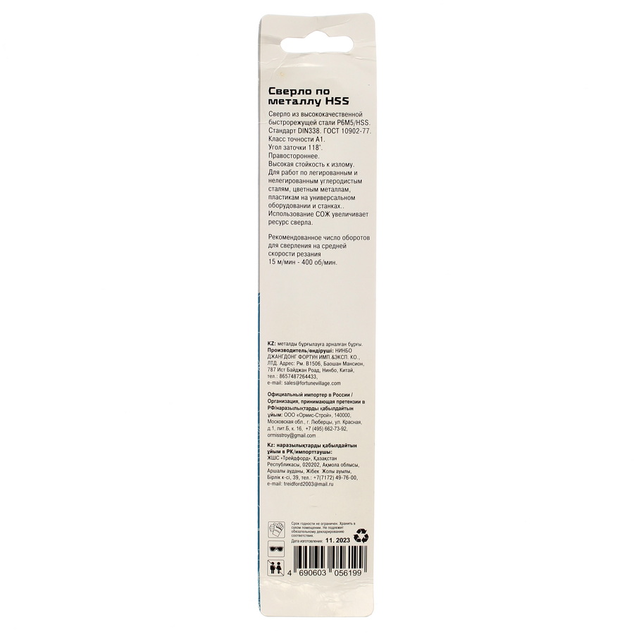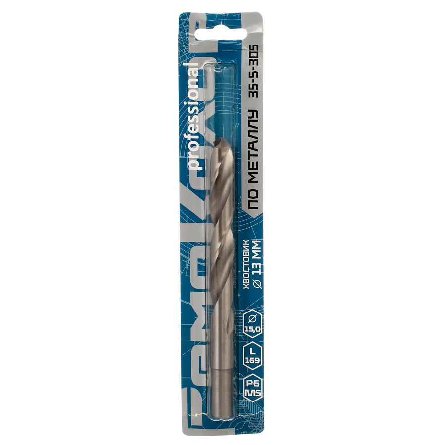 Изготовлено из высококачественной быстрорежущей стали Р6М5/HSS, класс точности A1, правостороннее. Твердость режущих кромок 62–65 HRc. Хвостовик цилиндрический - 13 мм, под патрон. Коническая заточка, угол заточки 118о. Рекомендуется использовать СОЖ.