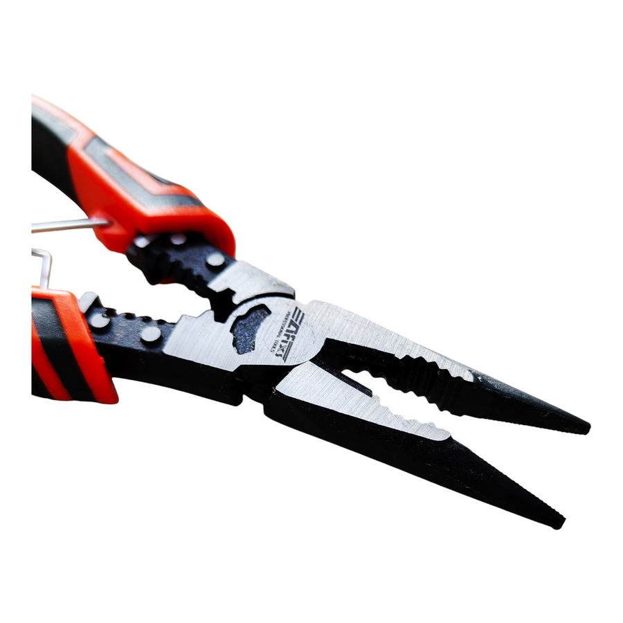 Узкий кончик плоскогубцев позволяет обжимать мягкие материалы, удерживать предметы диаметром до 30 мм, сжимать, скручивать, тянуть, захватывать в ограниченном пространстве.