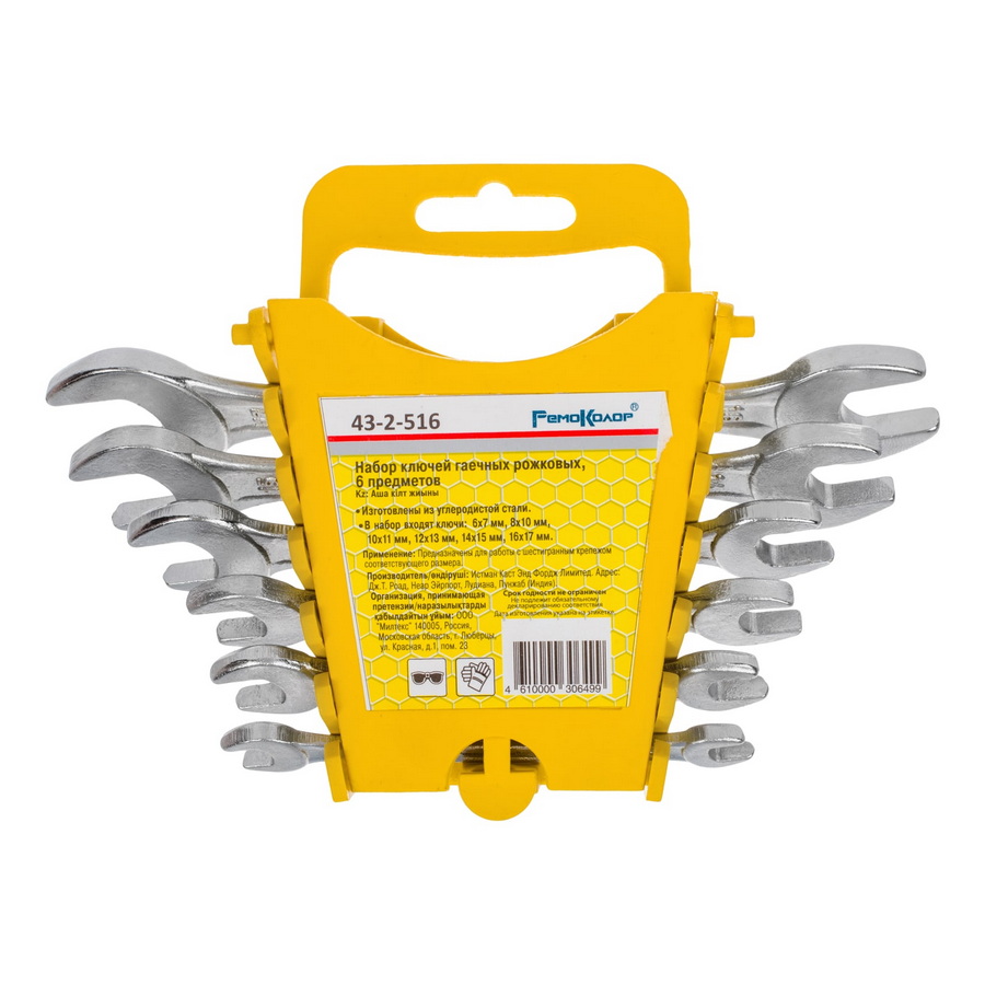 Состав набора: рожковые ключи 6x7, 8x10, 10x11, 12x13, 14x15, 16x17 мм.