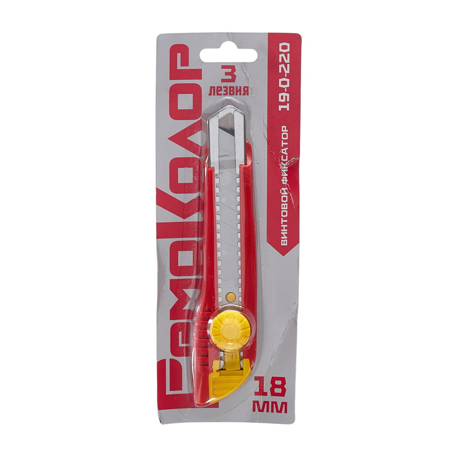 Материал корпуса ABS-пластик со вставками из термопластичной резины, сегментированное лезвие 18 х 100 мм, толщина 0,5 мм из высокоуглеродистой стали, 3 шт. в комплекте. Упаковка блистер.