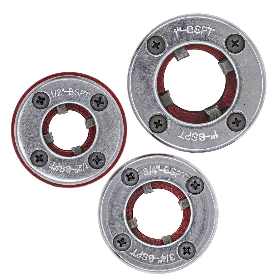 Предназначены для нарезки наружной дюймовой цилиндрической трубной резьбы (тип G) на металлических трубах основных применяемых размеров.