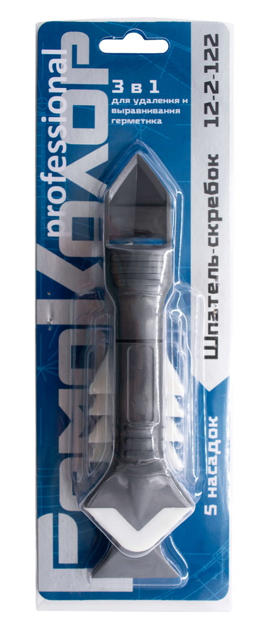 Применение: Телескопический шпатель для выравнивания и удаления излишков герметика при отделочных работах. 5 менныех насадок формируют швы разного радиуса. Отдельный шпатель-лезвие для очистки поверхности.