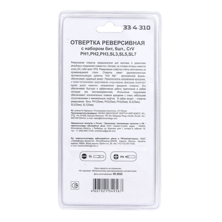 Материал: Стержень, биты - хромванадиевая сталь, двухкомпонентная рукоятка – пластик со вставками из термопластичной резины.