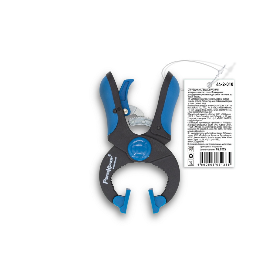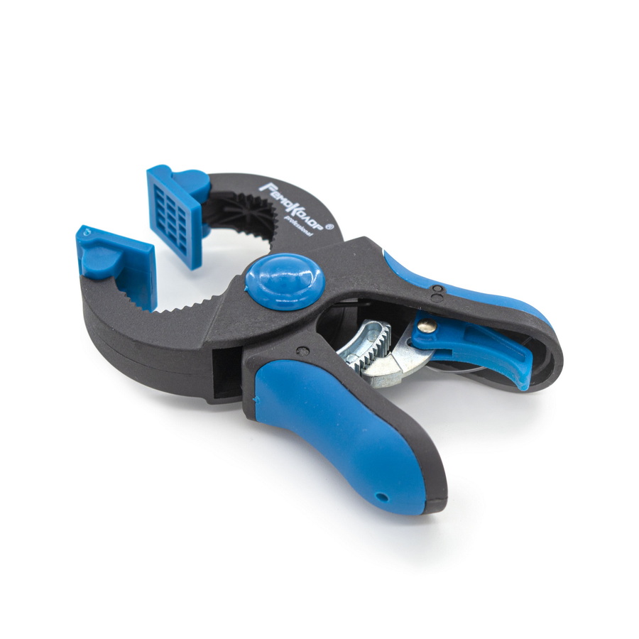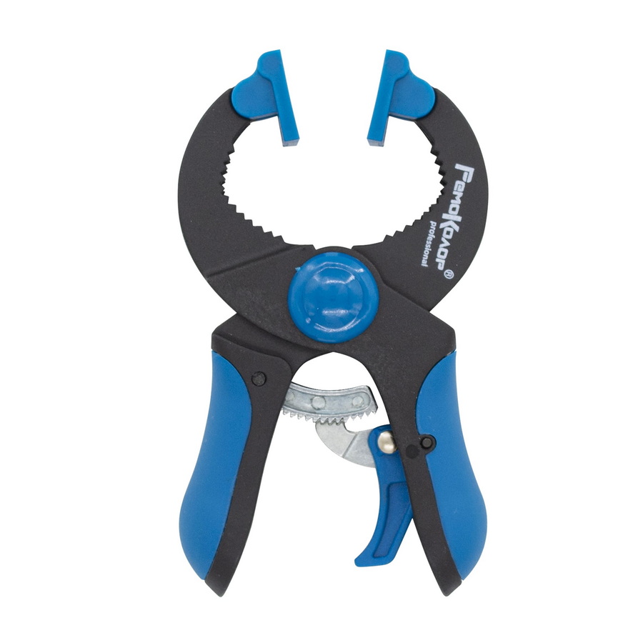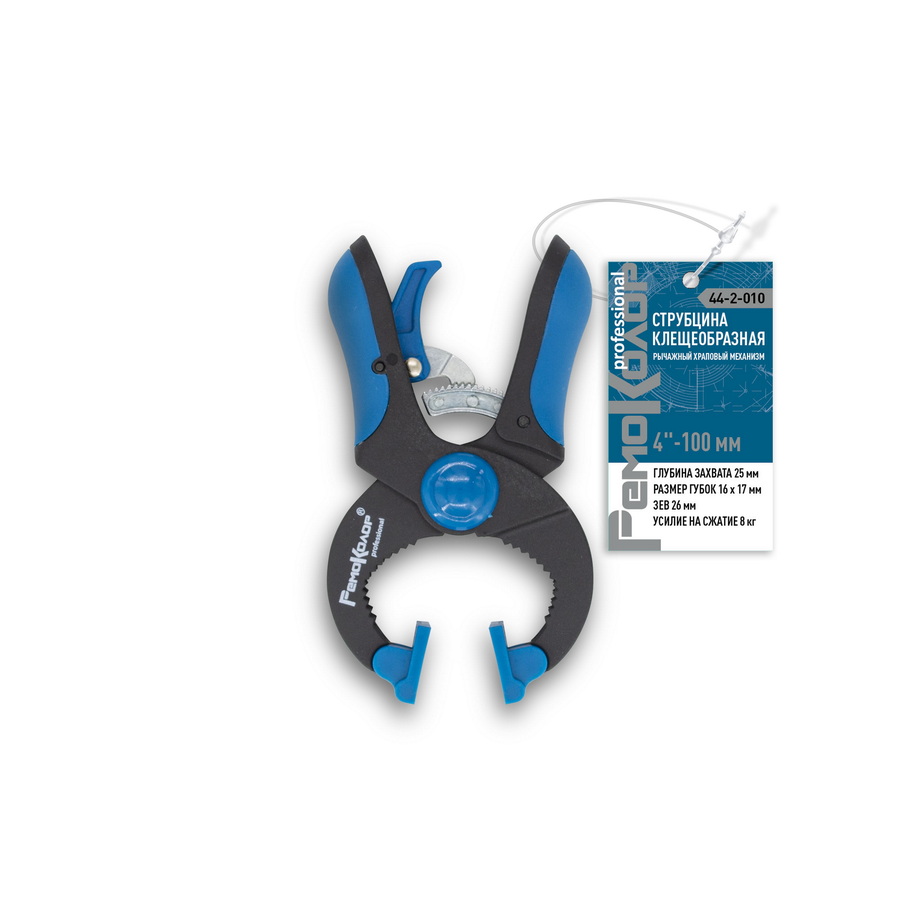 Служит для удержания различных деталей и заготовок во время работы. Храповой механизм обеспечивает надежную и жесткую фиксацию заготовок в отличие от механизма пружинных струбцин прищепочного типа. При нажатии на курок происходит мгновенное раскрытие струбцины.