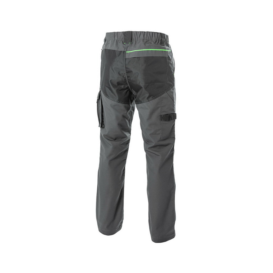Брюки доступны в стильном темно-сером цвете с зелеными акцентами и широкой гамме размеров (от S до 3XL). Идеально подходит для производственных и строительных рабочих. Также рекомендуется для слесарей, сервисных и технических специалистов.